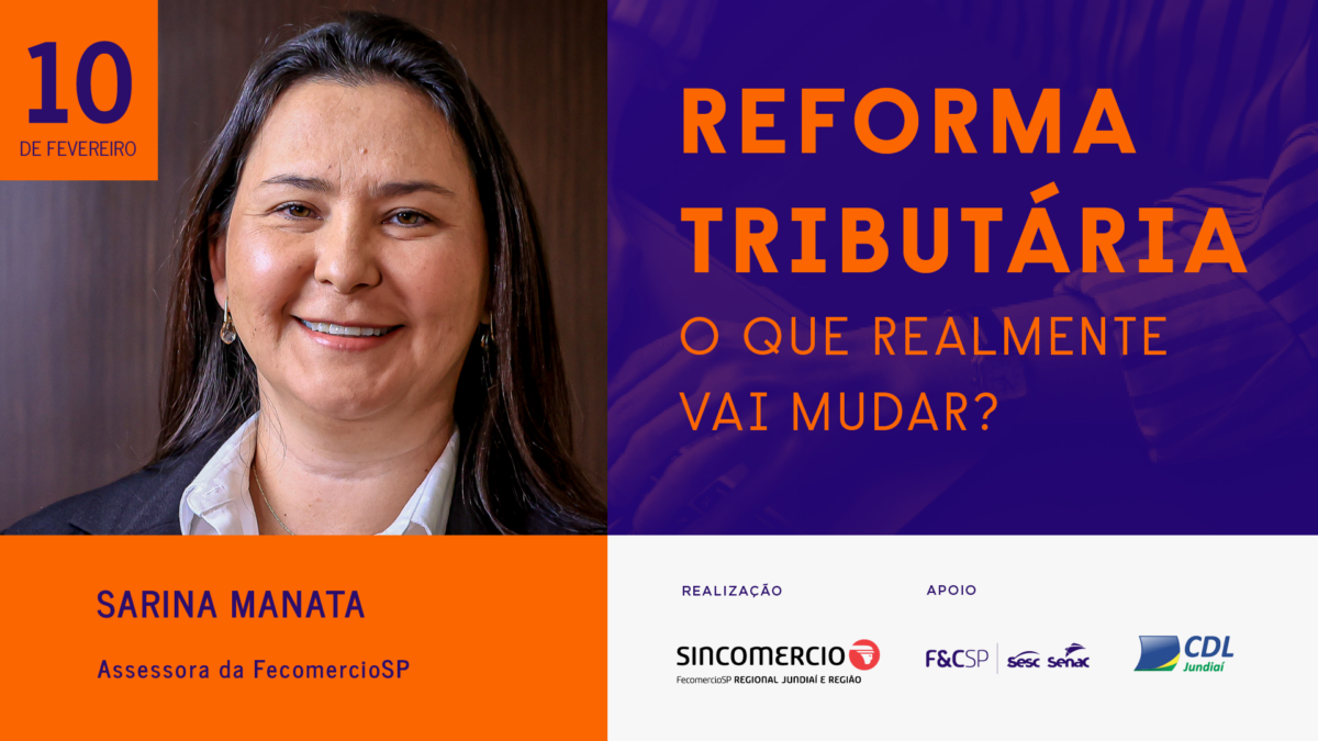 Jundiaí, 04 de fevereiro de 2026 – As recentes mudanças aprovadas com a Reforma Tributária seguem gerando dúvidas e incertezas no ambiente empresarial. Para ajudar os negócios a entenderem as novas regras, o Sindicato do Comércio Varejista de Jundiaí e Região (Sincomercio) promovea palestra Reforma Tributária — Afinal, o que Realmente Vai Mudar? na próxima terça-feira, dia 10 de fevereiro, às 19h, em parceria com a Federação do Comércio de Bens, Serviços e Turismo do Estado de São Paulo (FecomercioSP) e os apoios do Senac, do Sesc e da Câmara de Dirigentes Lojistas (CDL) de Jundiaí.